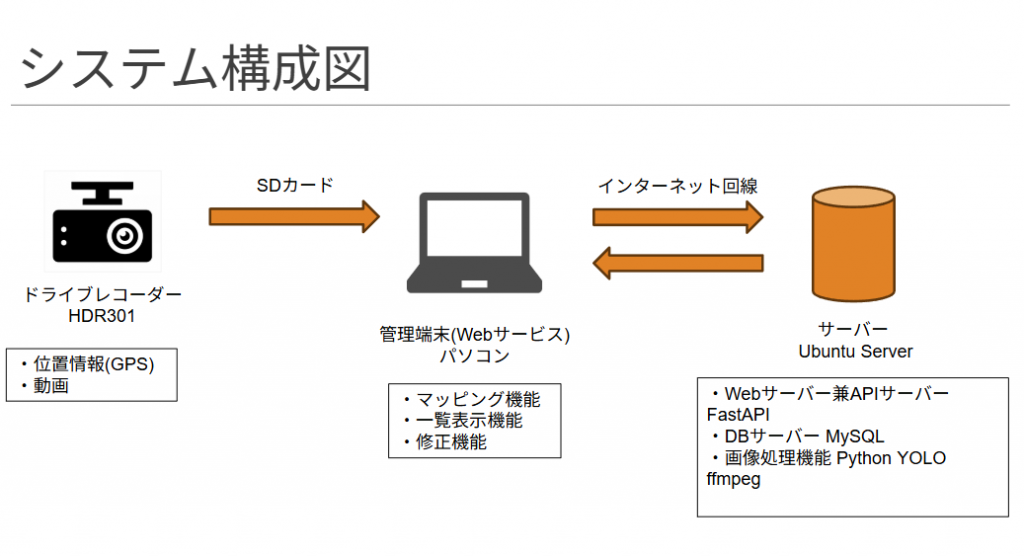 • パトロールカー巡回による自動検知により、土木事務所の負担を軽減する。​