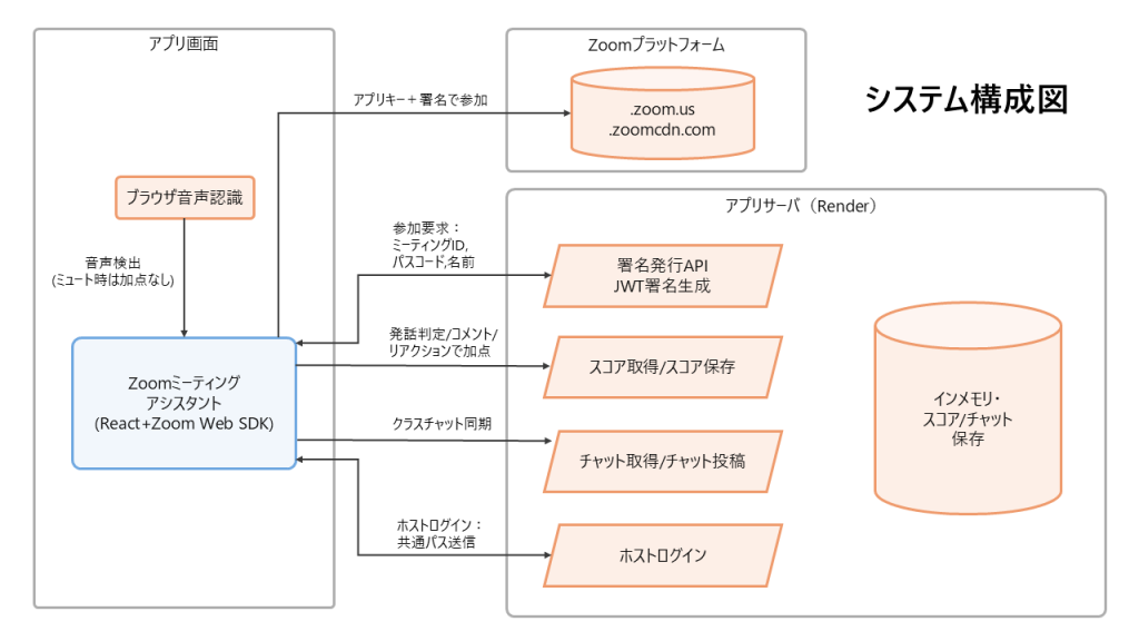 近年、オンラインでの会議が増加している一方で、会議での発言者が特定の少数に偏る傾向が依然として強いという課題があります。このプロジェクトでは、発言・チャット・リアクションをスコア評価することによって会議の参加者全員の活動量を可視化し、その課題の解決を支援するシステムの開発を目指しています。