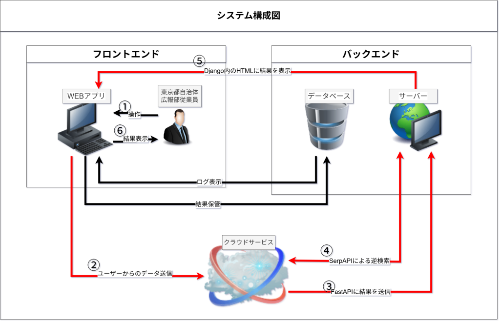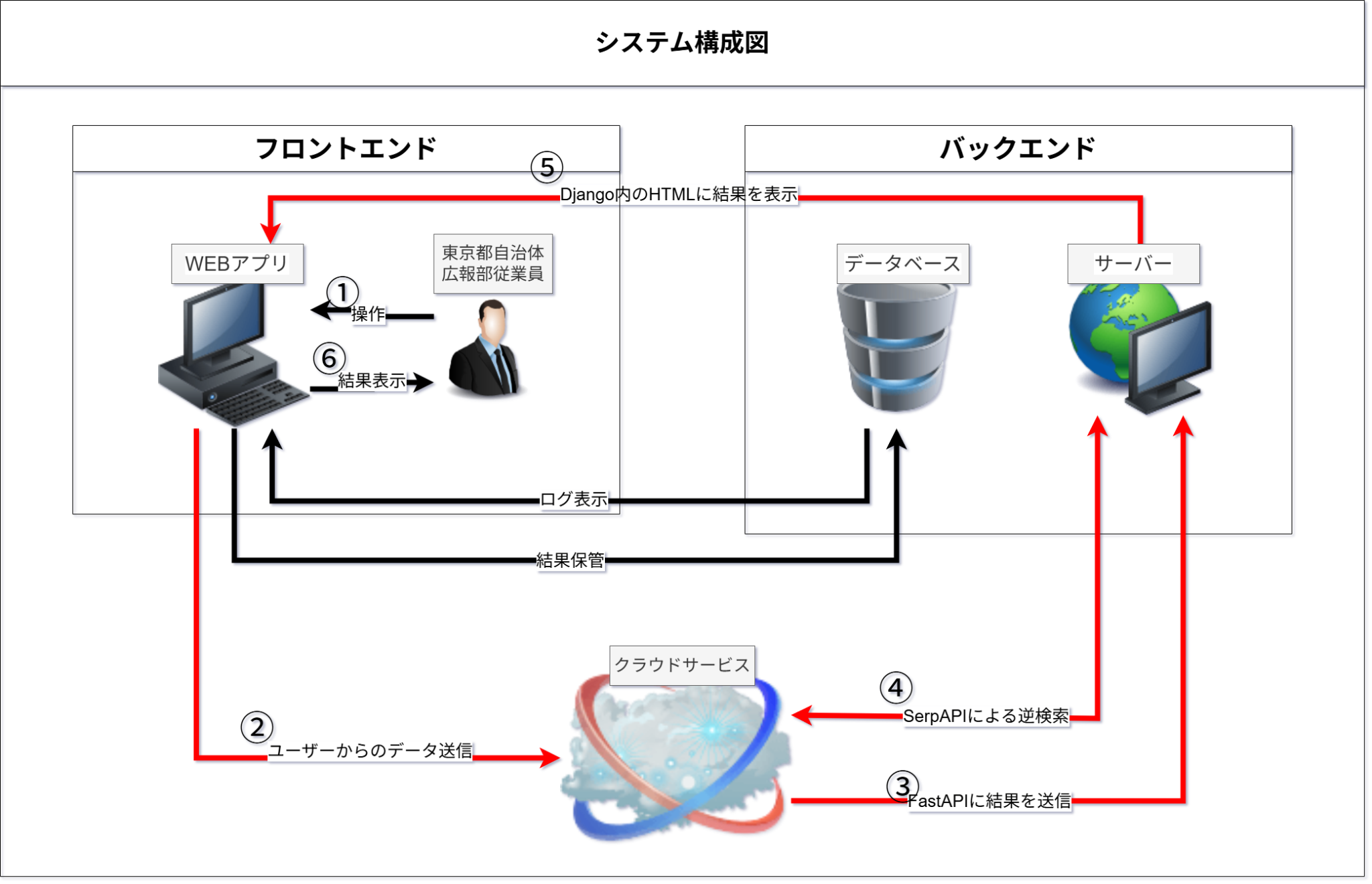 • 外部地図サービス(国土地理院やOpenStreetMapを想定)に検出情報を重ね合わせる
