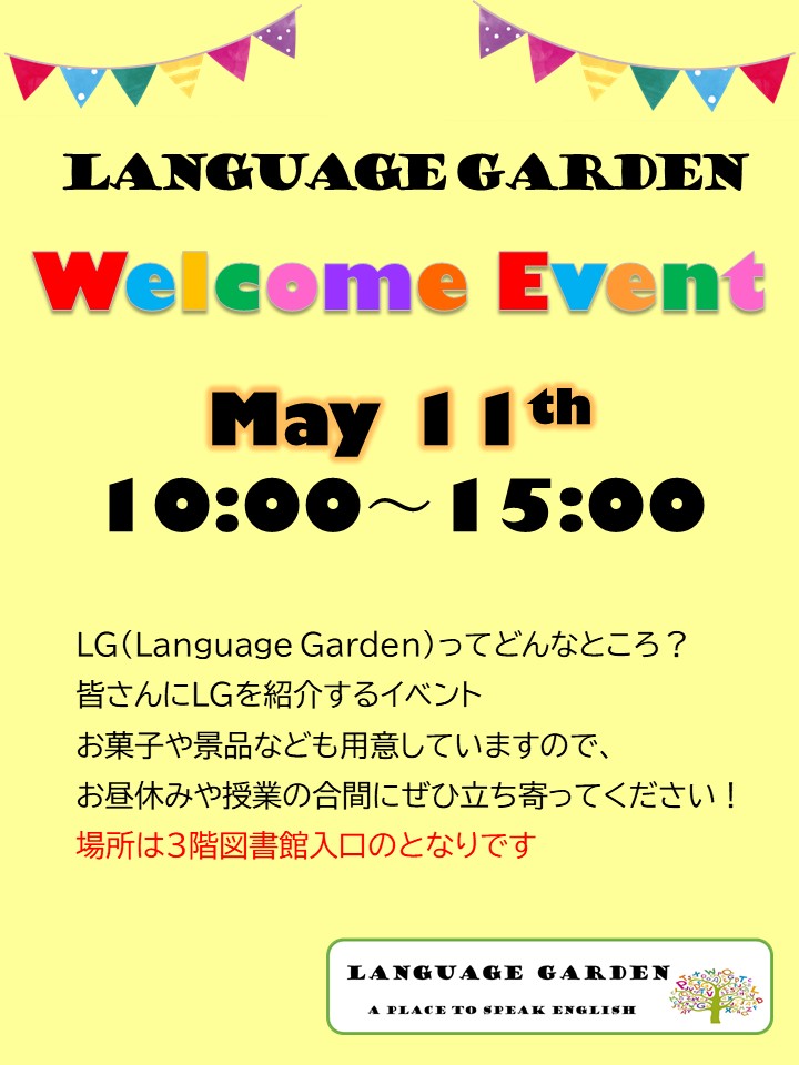 Language Garden Adachi Event Upcoming Event! 今後のイベント情報です Language Garden Adachi では季節のイベントを行っています。 学生通しや先生との交流を深めましょう! 皆さんのご参加をお待ちしています!!